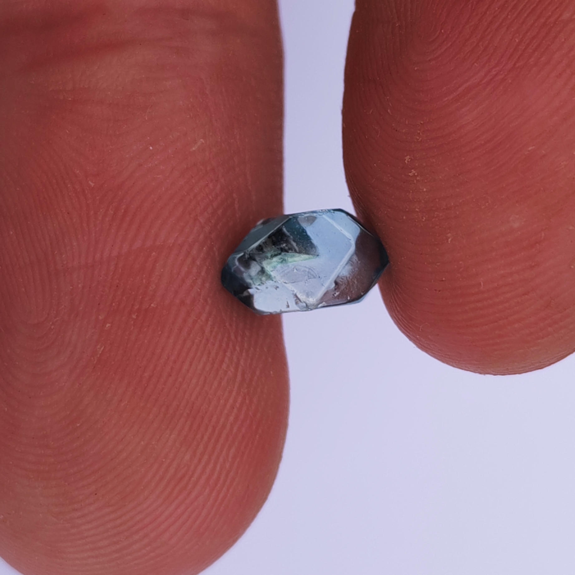 Double terminated clean blue zircon crystal from Ratanakiri, Cambodia.