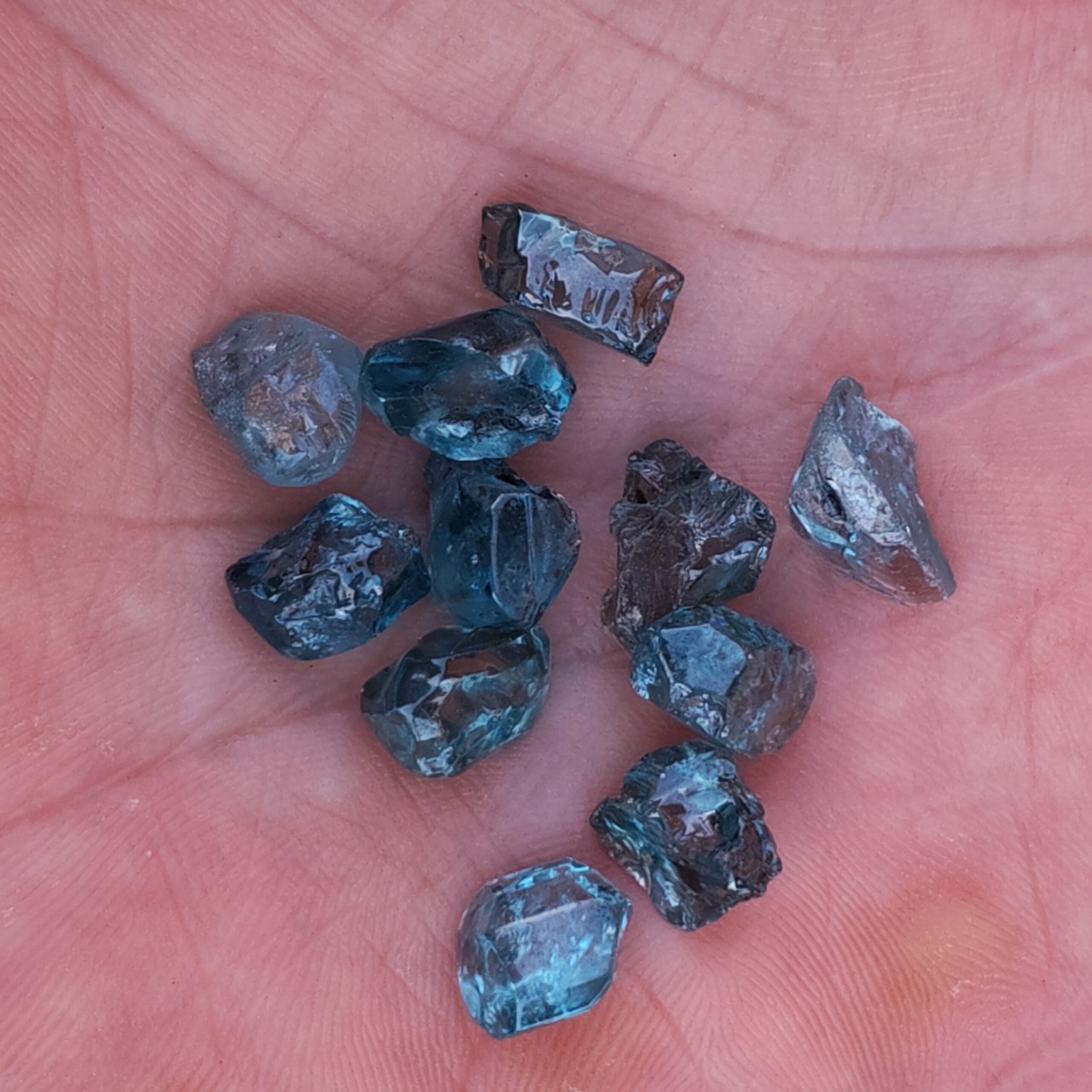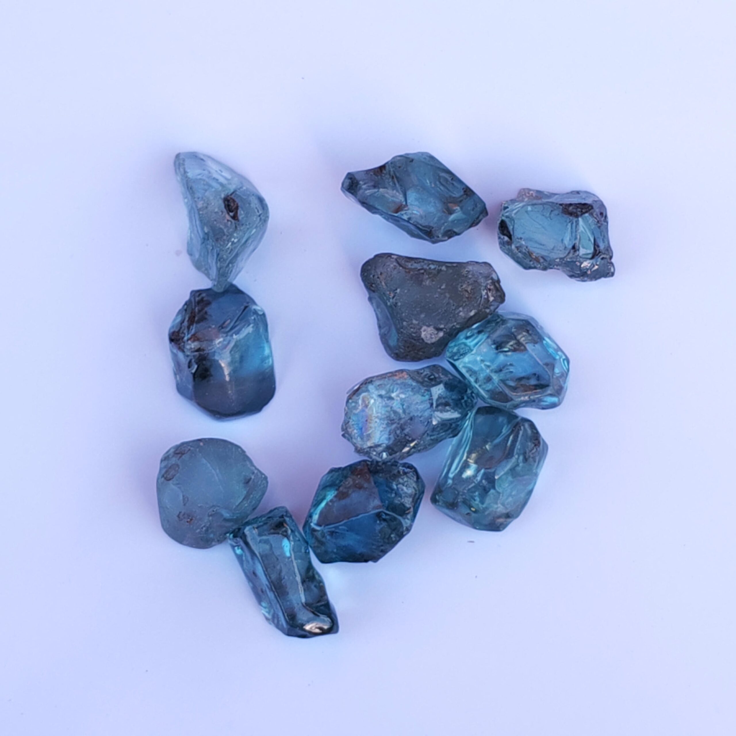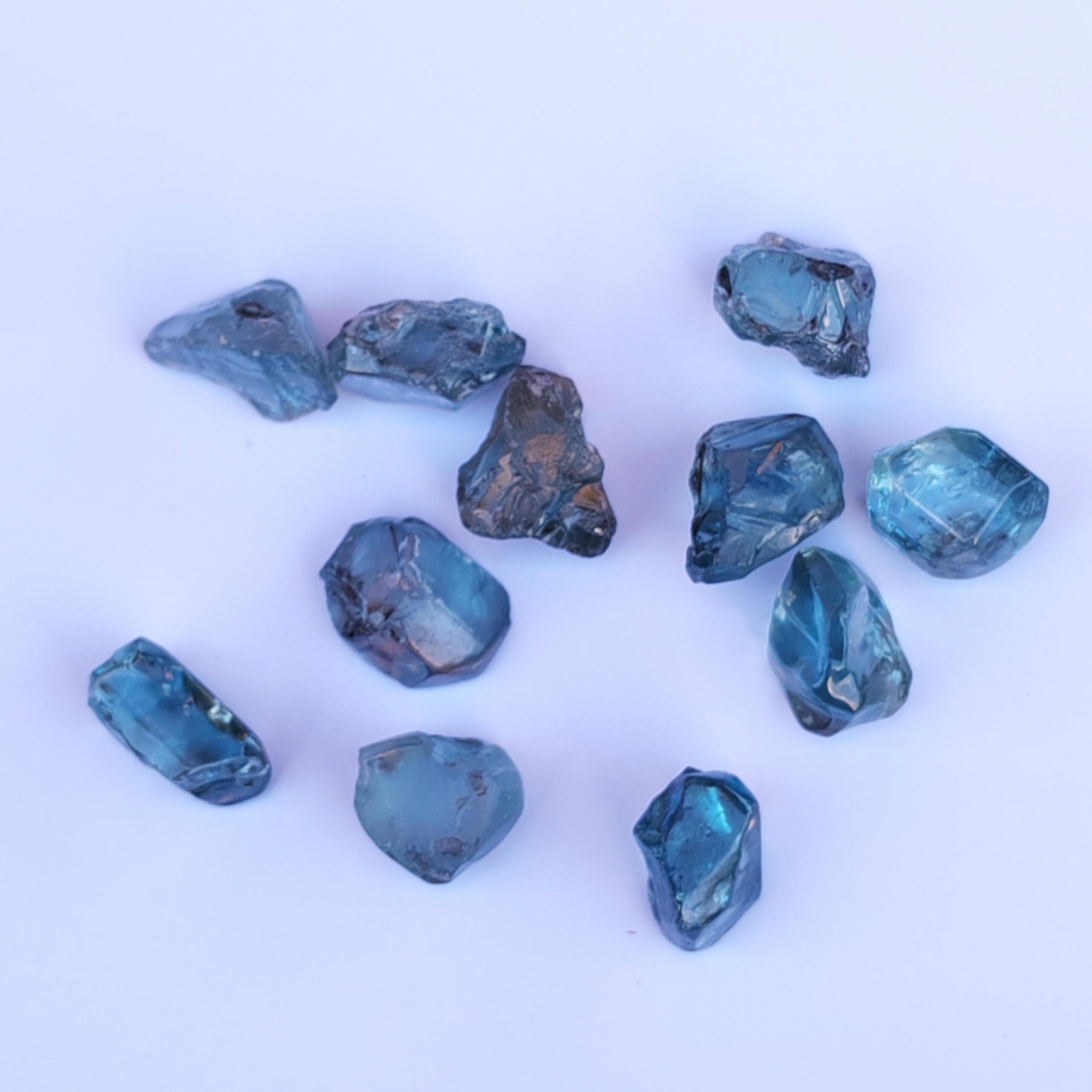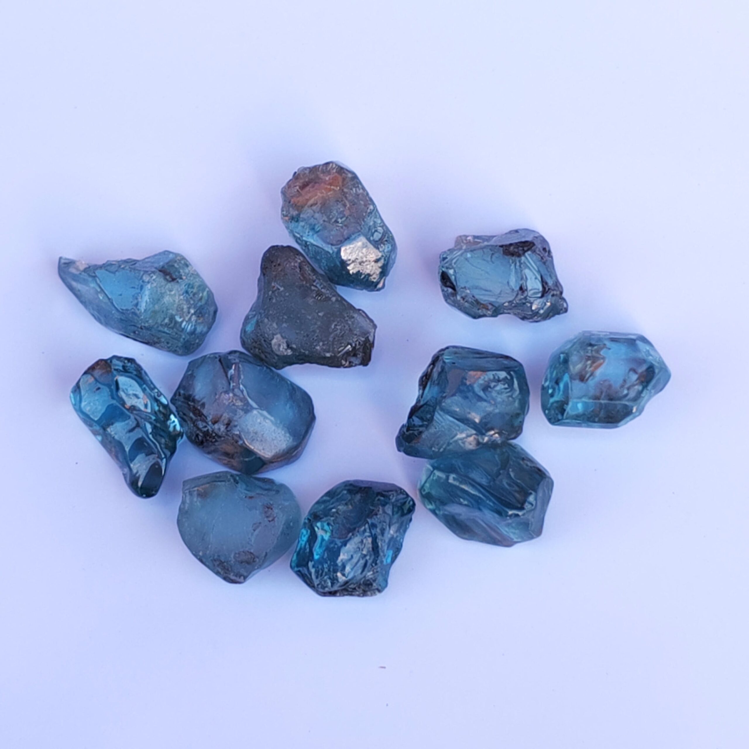 Clean blue zircon rough stones.